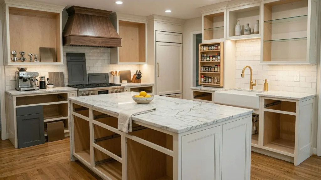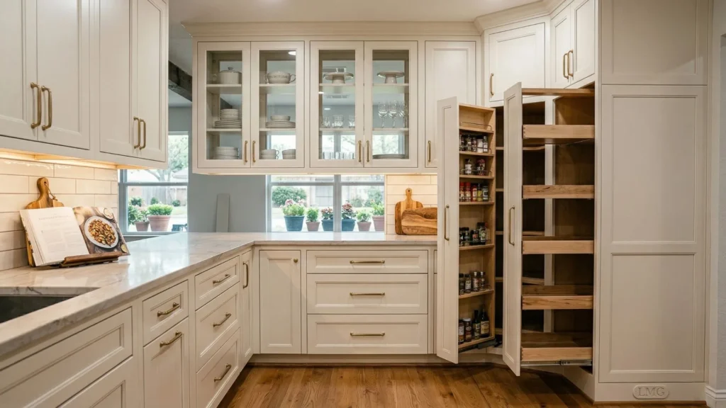 We design and install cabinets that maximize every inch of your kitchen — from pantry pullouts to corner solutions. No flat-pack. Built for Laredo homes.